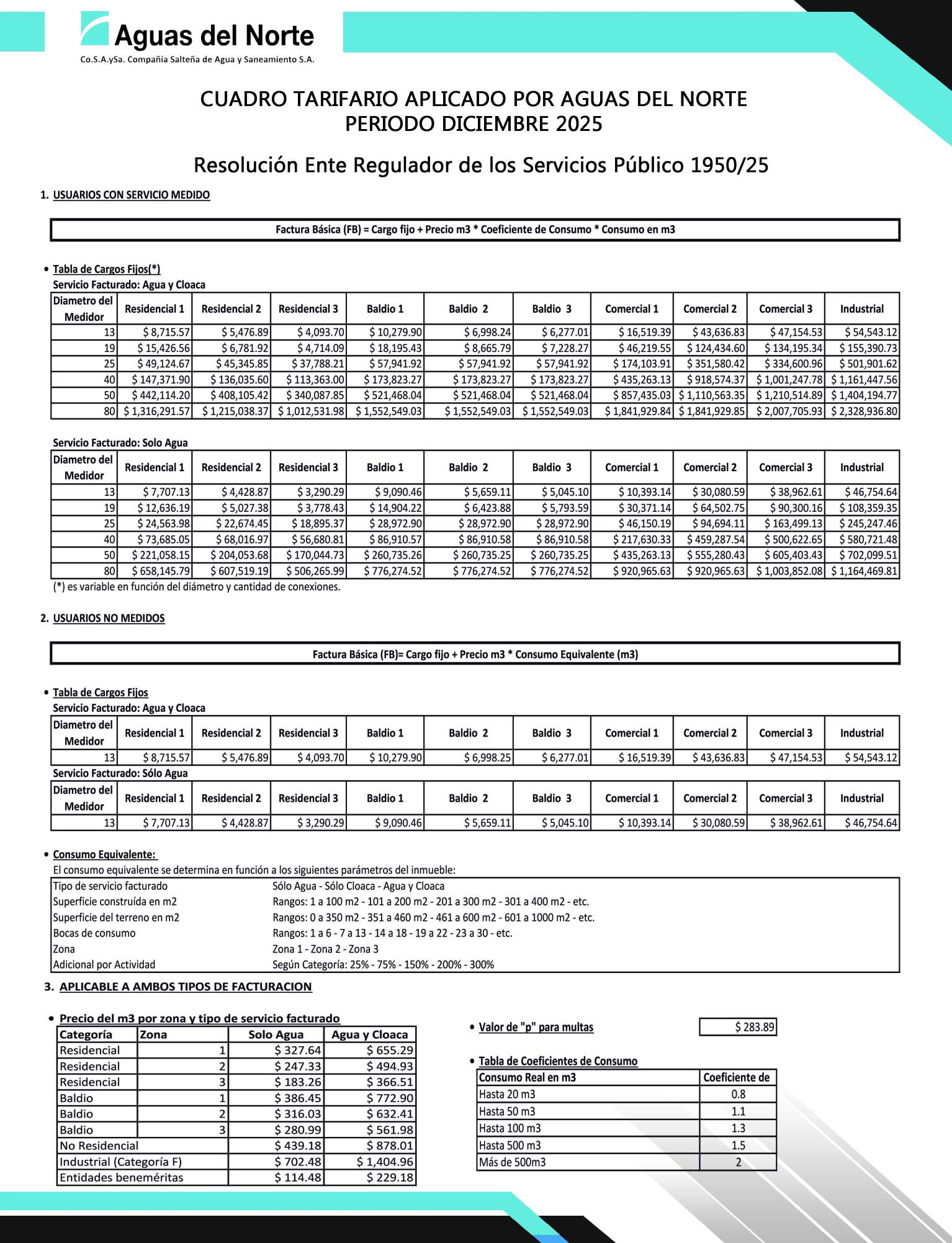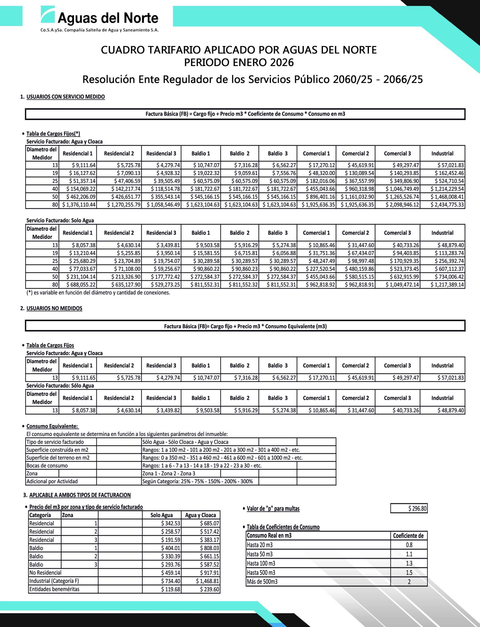 pueden abonar la factura que emite mensualmente Aguas del Norte.